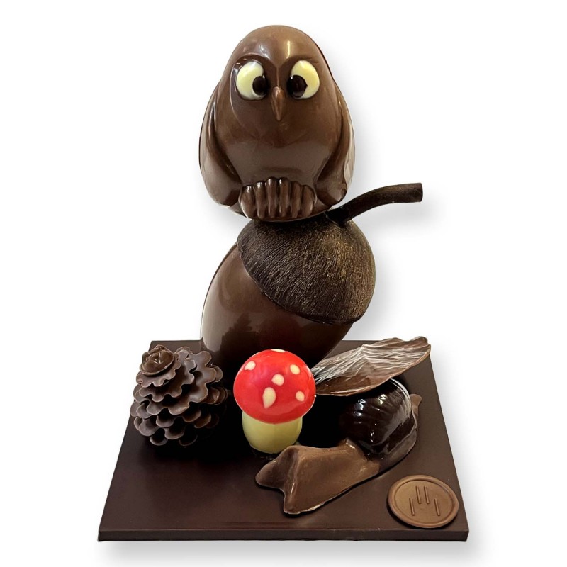 Composition automnale en chocolat noir 66%, lait 38% et blanc 33%.
