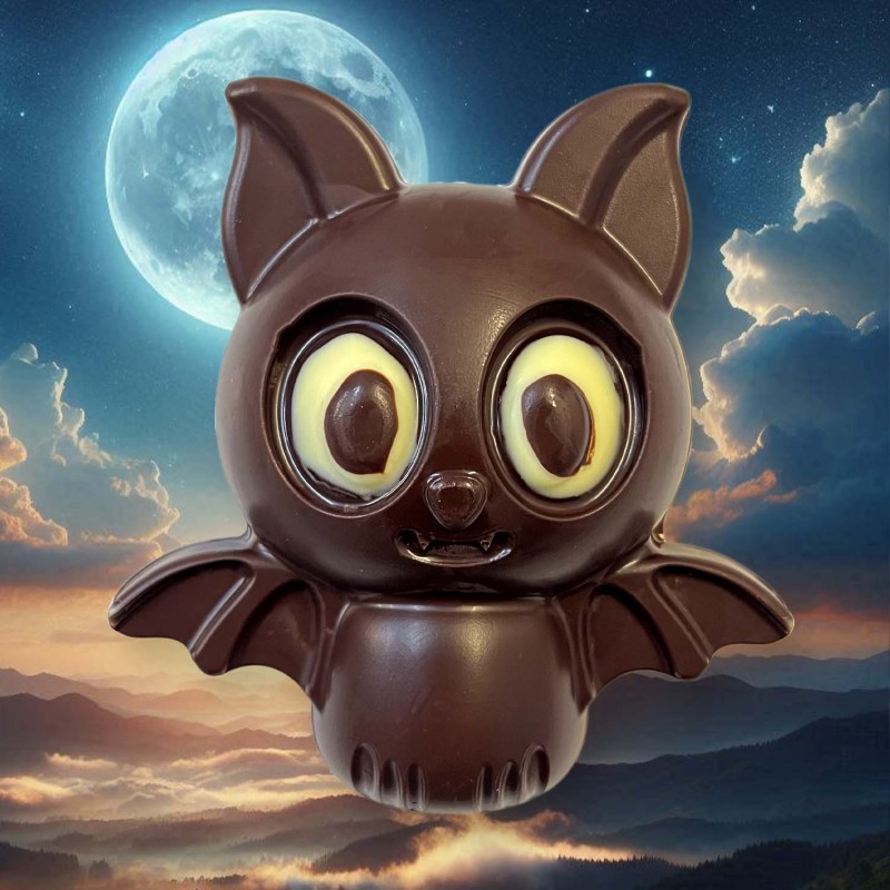 petite Chauve-souris garnie en chocolat noir 66% ou lait 38%.