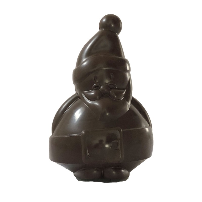 Père Noël en chocolat noir 66% ou lait 38% garni.