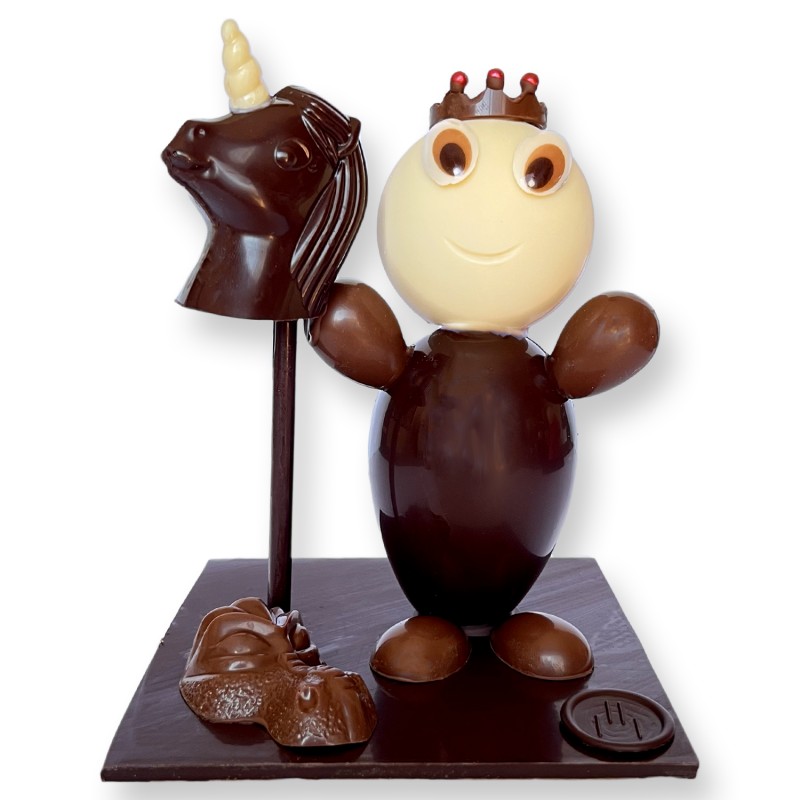 Prince Charmant en chocolat noir 66%, lait 38% et blanc 33%.